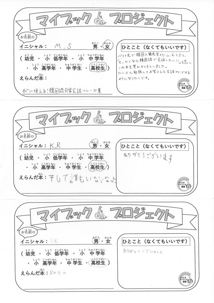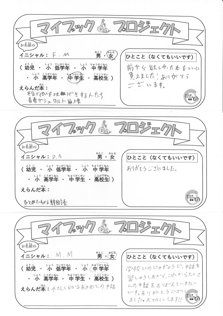 マイブックプロジェクト2025サンキューカード その2