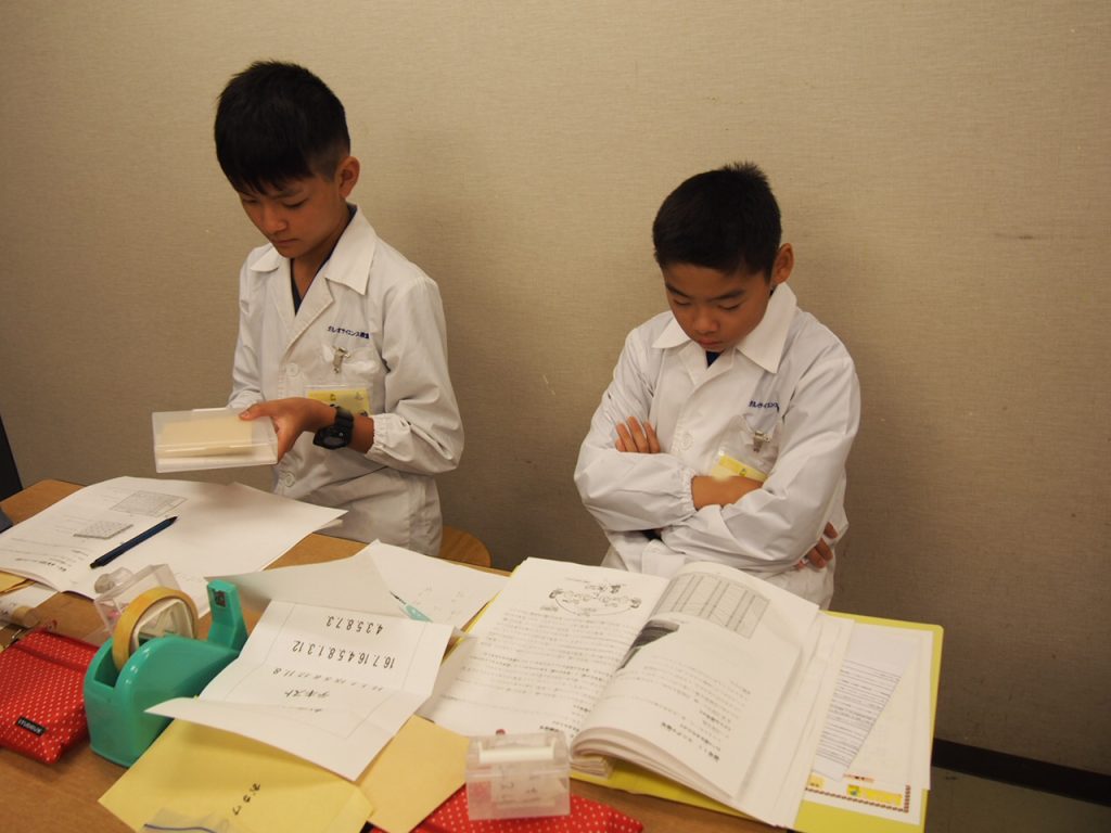 お子さんたちは、自分の封筒を開けます。封筒に入っている紙を取り出して、広げると、数字が書かれています。どの暗号が使われているのかテキストを見ながら、探します。その暗号の解き方を試します。違うかもとなったら、他の暗号を試します。解けると、にんまりしながら、解いた暗号に書かれている場所に行って、次の封筒を見つけます。ひとつ目の暗号が解けると、ホッとして、笑顔が見られます。考え抜いたうれしさを感じます。