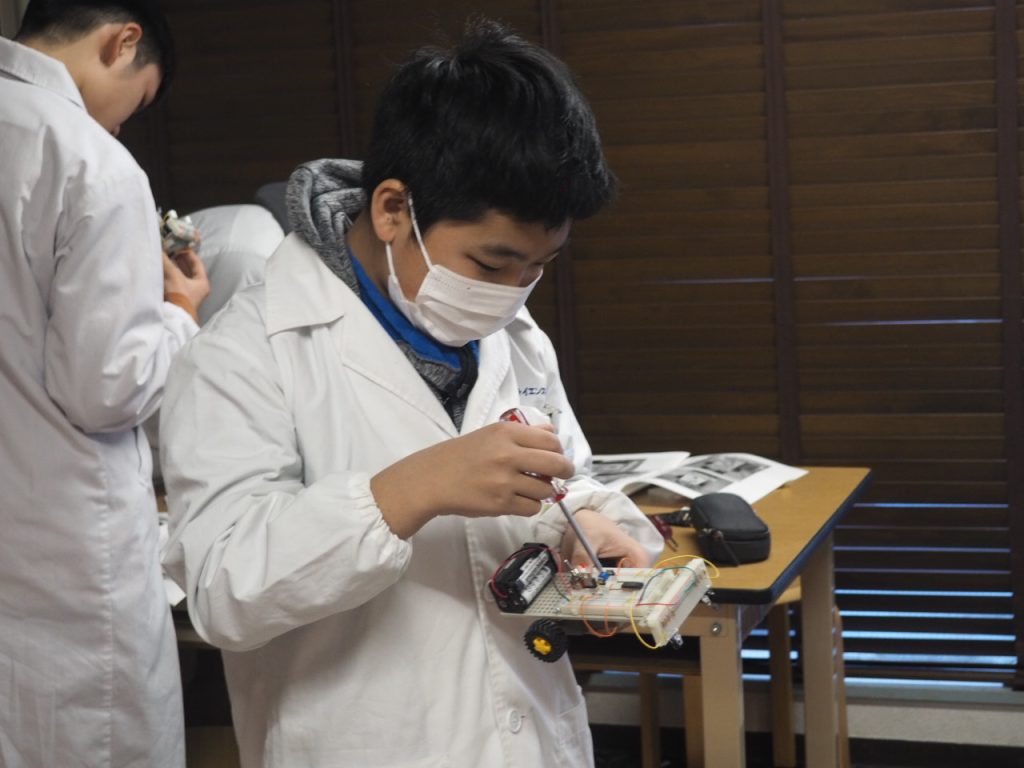 2月14日(土)三宮ホーキングクラス 2026/02/18 こんにちは。鳴海です。 2月14日(土)の三宮ホーキング(小6~中3)クラスの報告をいたします。 テーマは「ライントレースカーで回路工作」です。