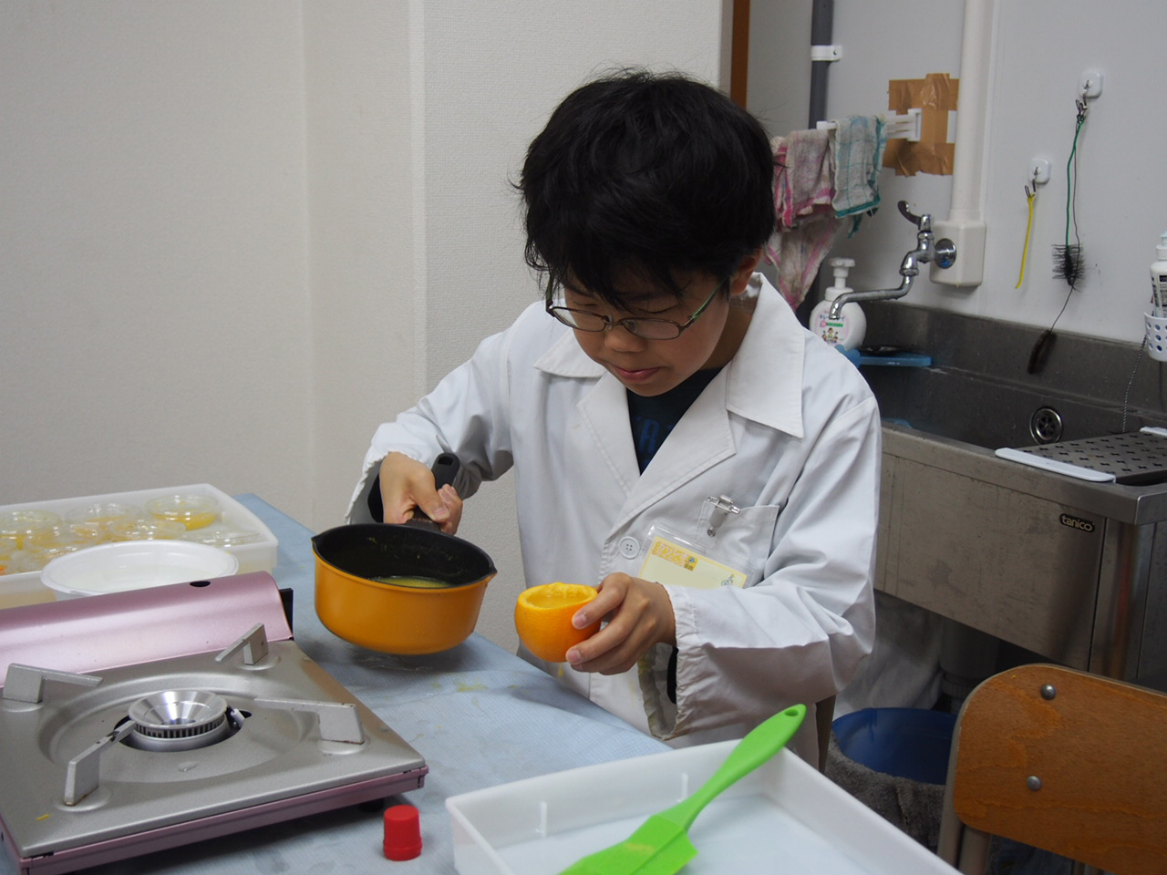 テーマは「果物まるごとゼリーを作ろう」です。